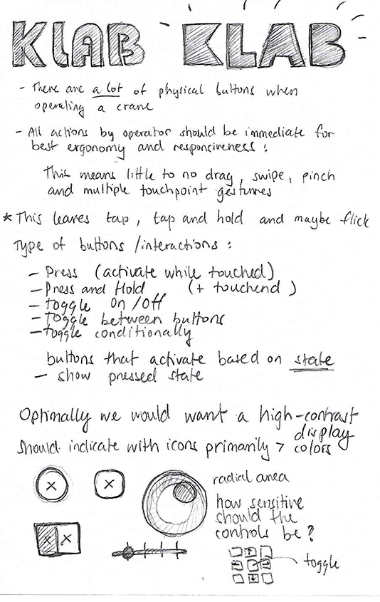 These sketches show some of the thoughts concerning UI and how all the particular design elements are meant to conform to the intended use of the tablet app.