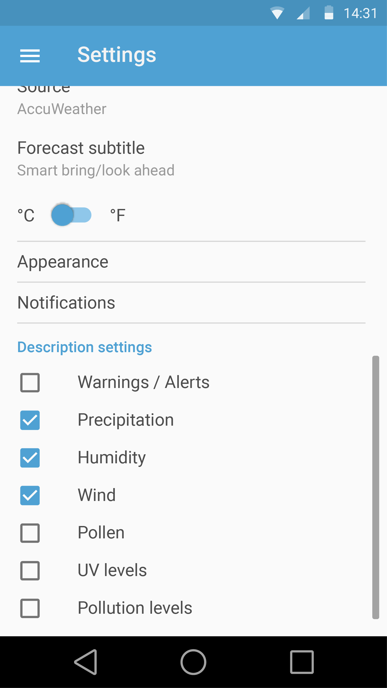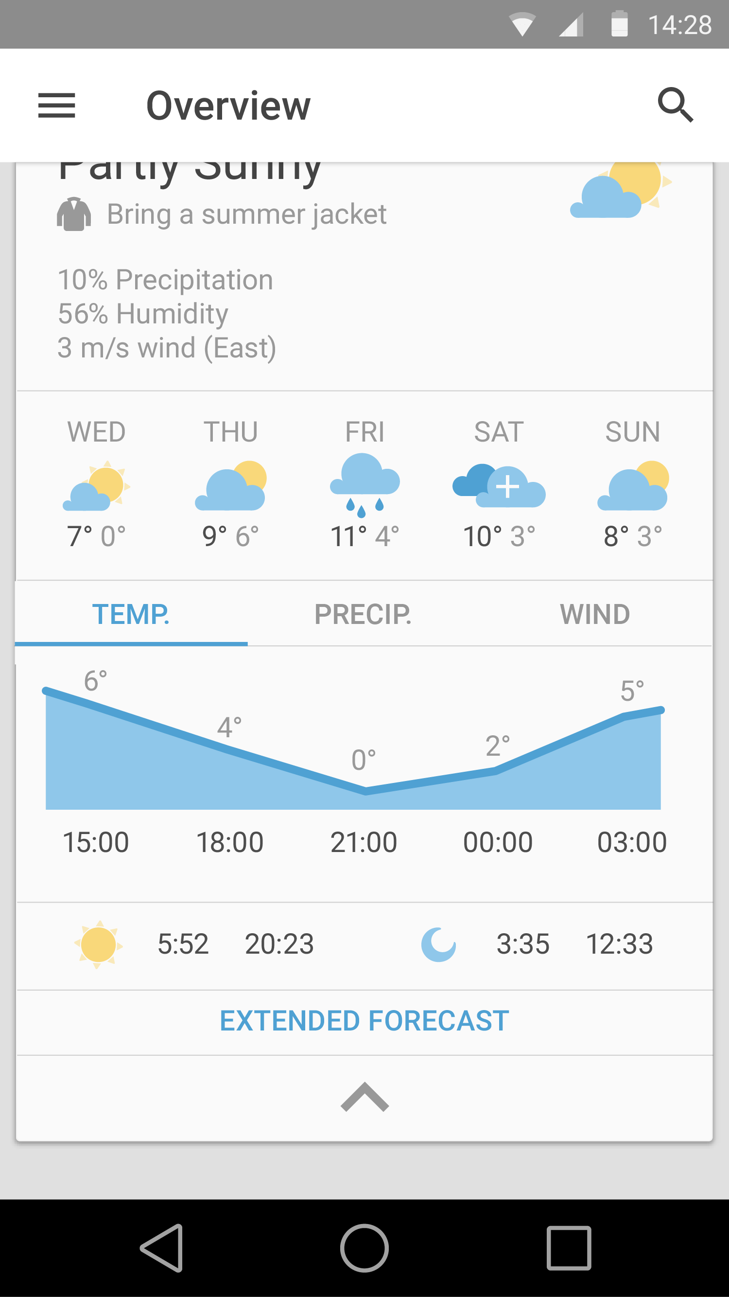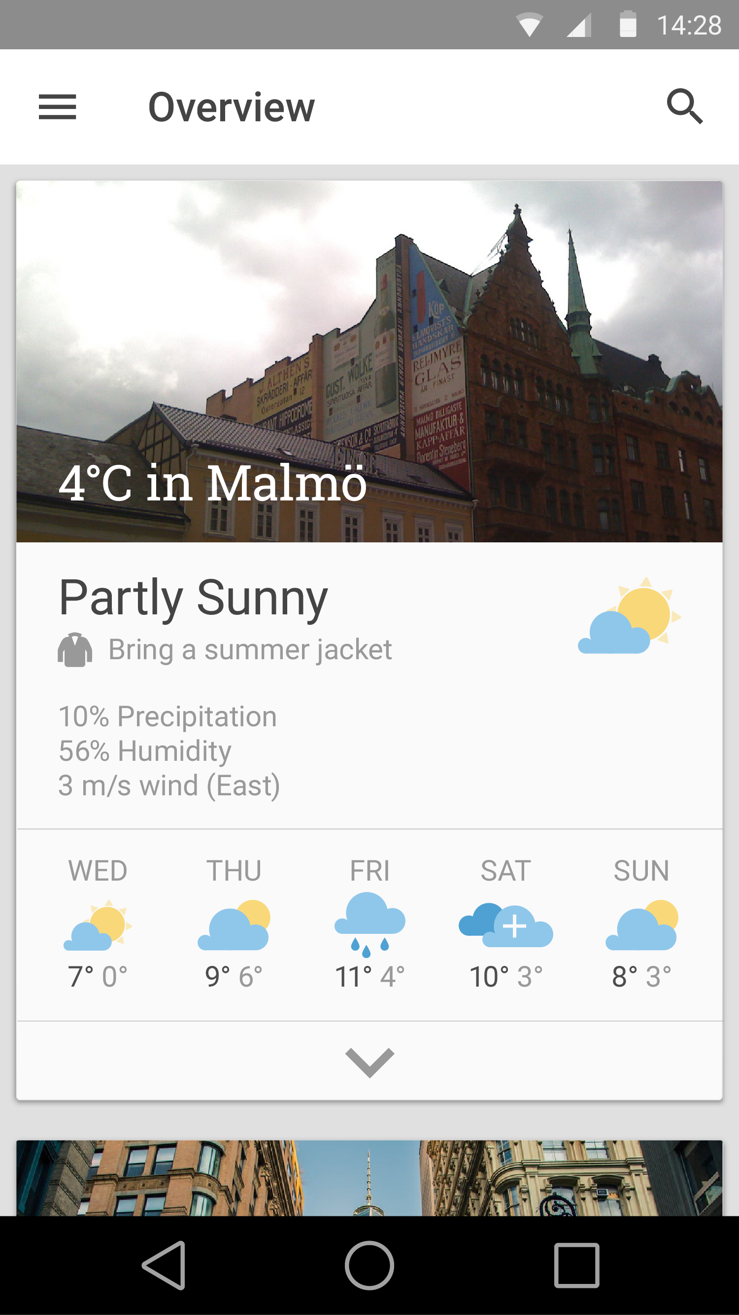 There are some settings which also allow the user to filter/customize the overview more with different types of data. The thought behind that is the ability to "collect" weather cards and still keep a relatively simple Overview screen that doesn't scroll for forever.