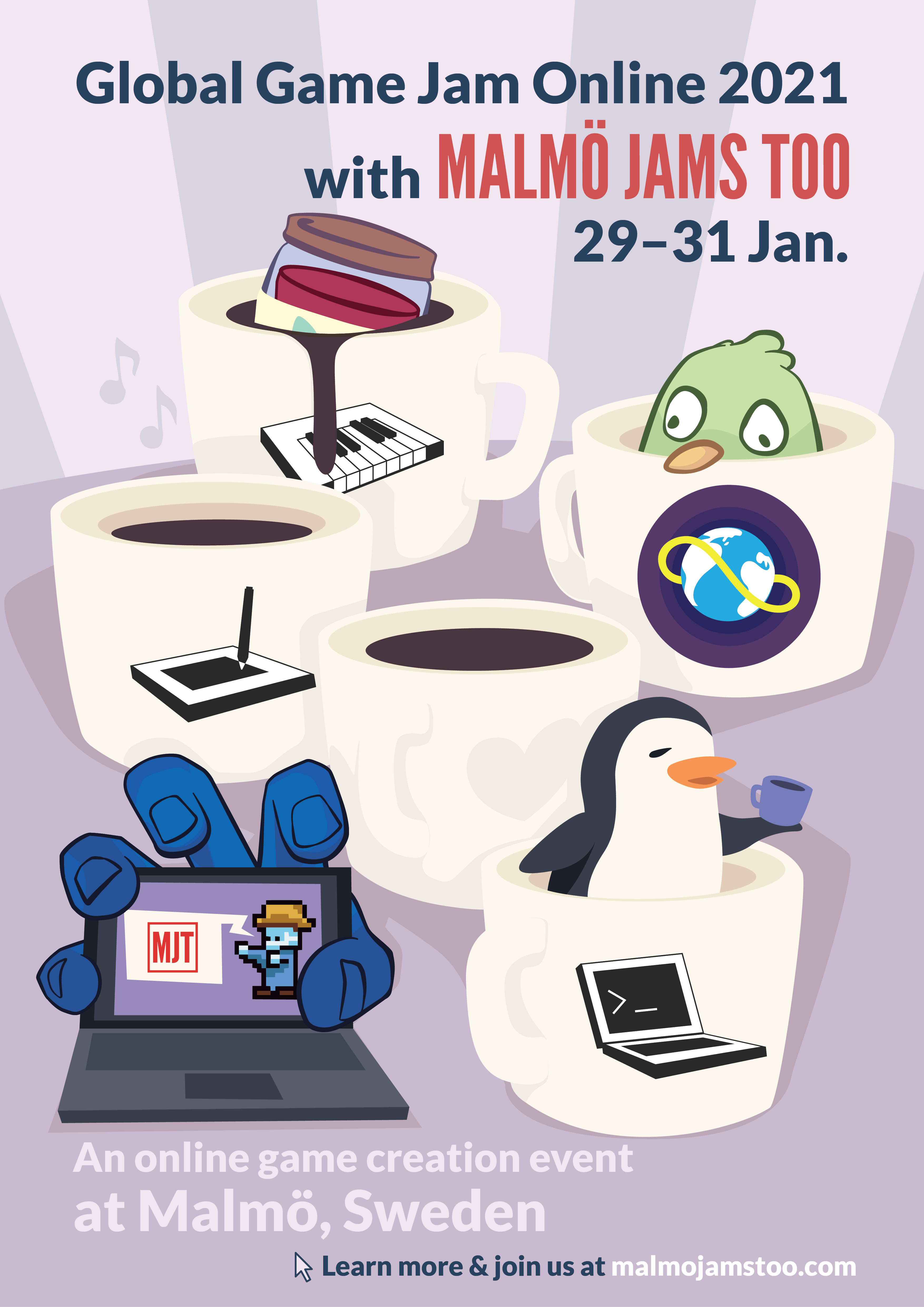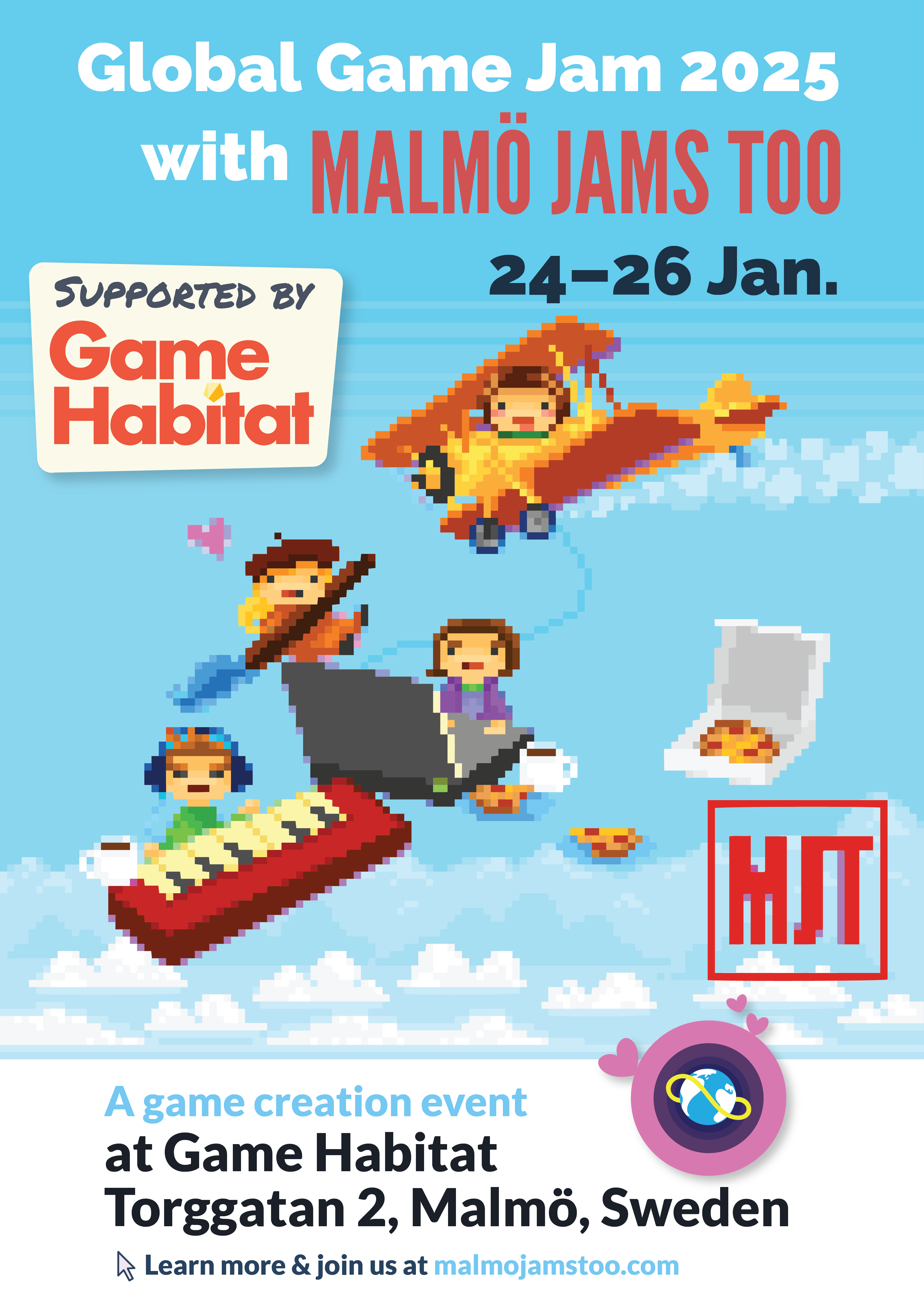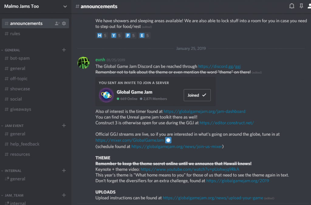 We loved being at Starbucks in Malmö, though we later switched to Condeco after their departure. Most of the schedules are announced through Discord, our website and through Facebook. Game (and creative) jams had a mailing list for previous participants.