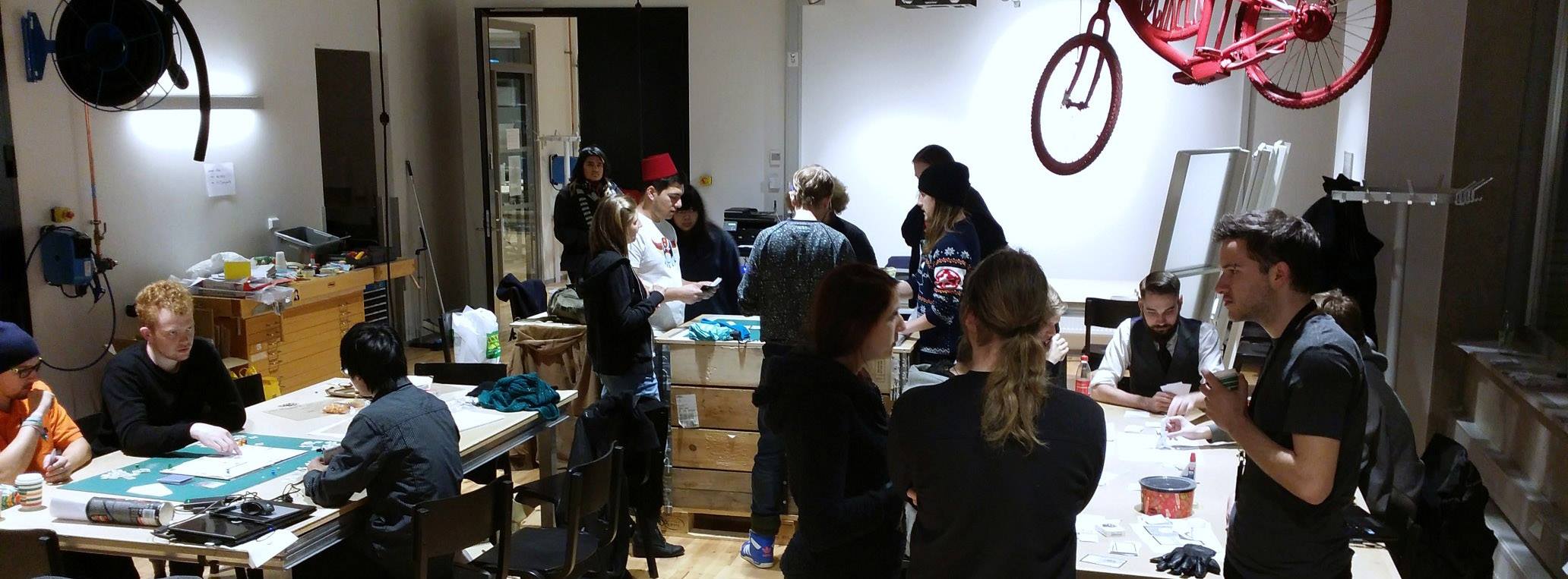 Here are photos from one of the first sketch jams held and the first game jam we held for tabletop games.