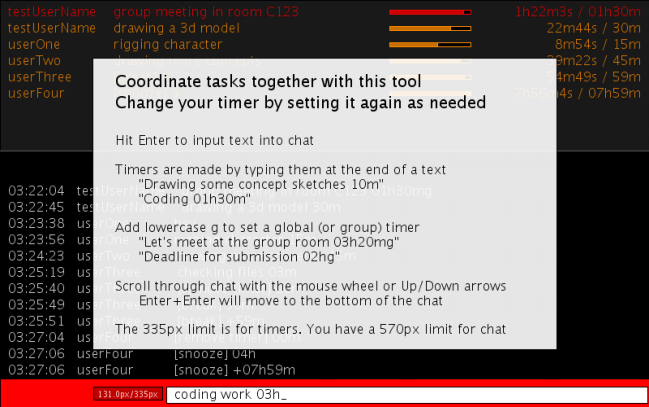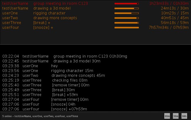 In essence the Mutter application was a chatroom where users would comment about what they are doing and approximately for how long. There was also a feature which pinged everyone for any announcements or arranged meetings, and ways to manipulate timer durations.